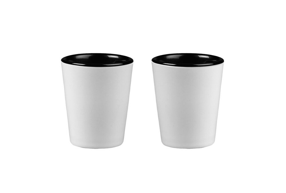 2 Oz. Two Tone Ceramic Shot Glass WhiteBlackPMSBlack6C Blank